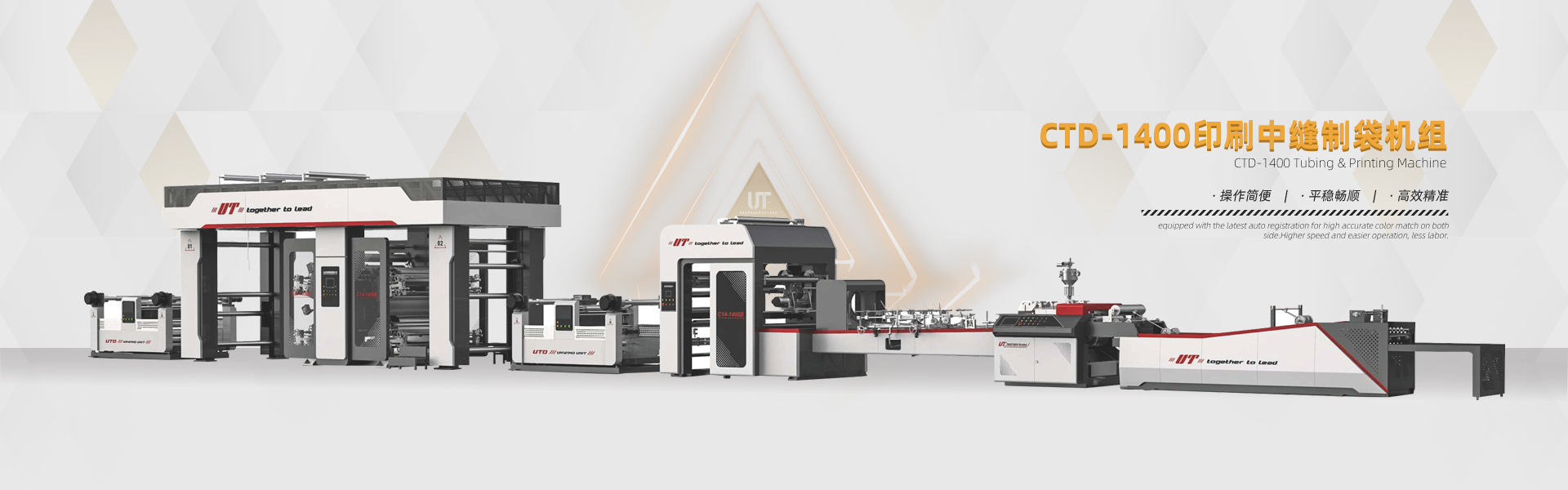 優(yōu)特機械精心致力于塑料編織行業(yè)、紙塑軟包裝行業(yè)、輪胎制造行業(yè)等成套生產(chǎn)設備的設計和制造,并為用戶提供生產(chǎn)工藝及培訓。我們的服務范圍包括各類塑料覆膜機、紙張覆膜機、BOPP彩印膜雙面自動對版覆膜機、 紙塑邊縫三合一覆膜機、中縫印刷制袋機、以及輪胎行業(yè)循環(huán)回收使用的隔離膜生產(chǎn)線。